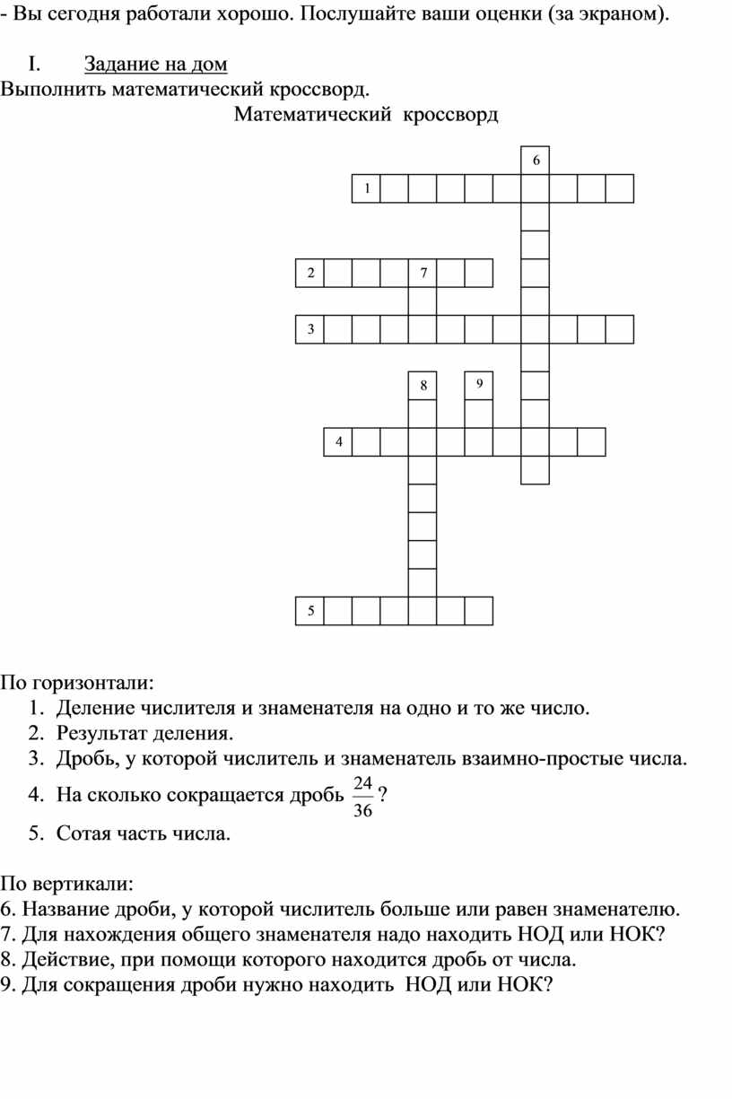 Математический кроссворд