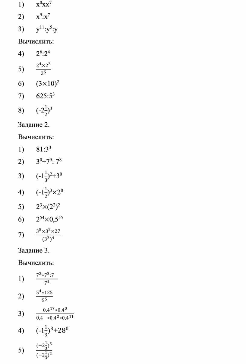 - умножение и деление степени;