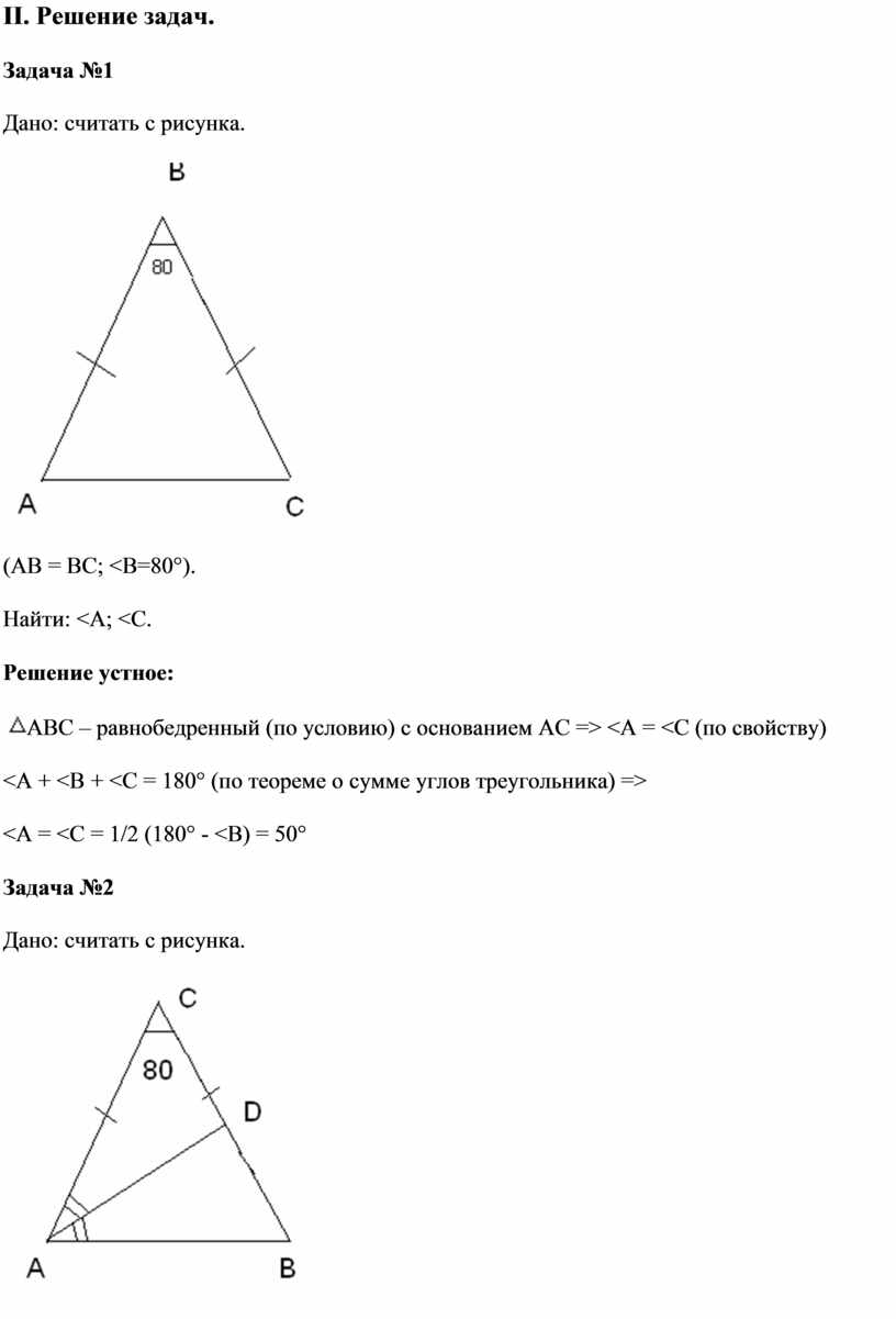 (АВ = ВС; <В=80°).