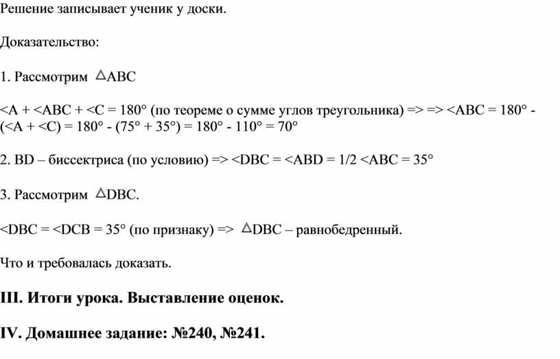 Урок геометрии в 7-м классе: Решение задач по теме "Соотношения между сторонами и углами треугольниками"