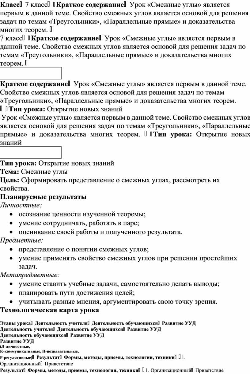 · Образовательные: развивать у учащихся навыки построения смежных углов, находить их на чертеже, научить решать задачи с использованием свойств смежных и углов; · Развивающие: содействовать развитию математического кругозора, мышления, речи, внимания; · Воспитательные: воспитывать культуру умственного труда, установку на самообразование, умение сотрудничать, заинтересованность к предмету