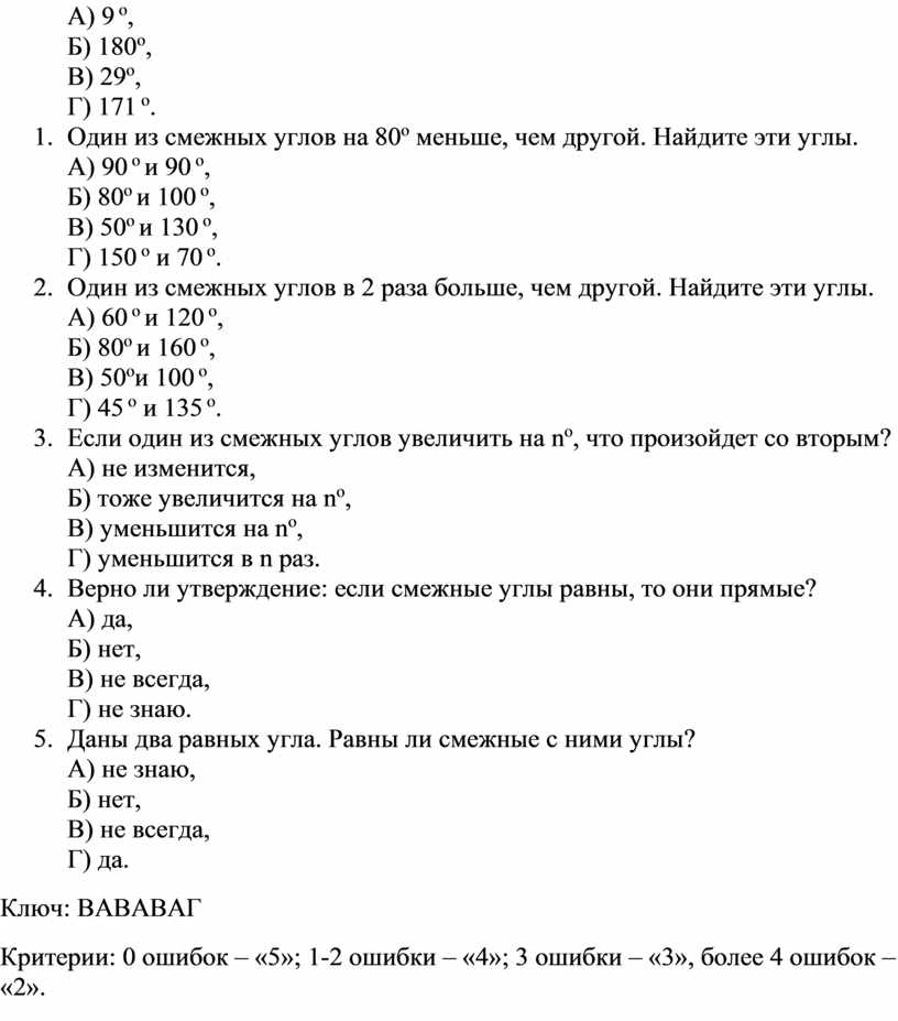 6. Верно ли утверждение: если смежные углы равны, то они прямые?
