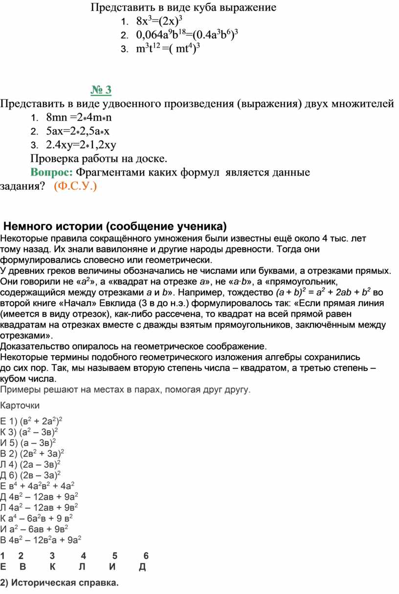 Некоторые правила сокращённого умножения были известны ещё около 4 тыс. лет
