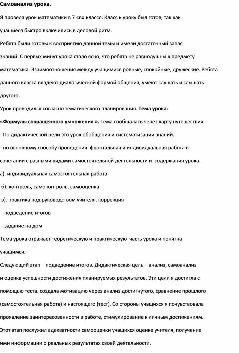 Я провела урок математики в 7 «в» классе. Класс к уроку был готов, так как