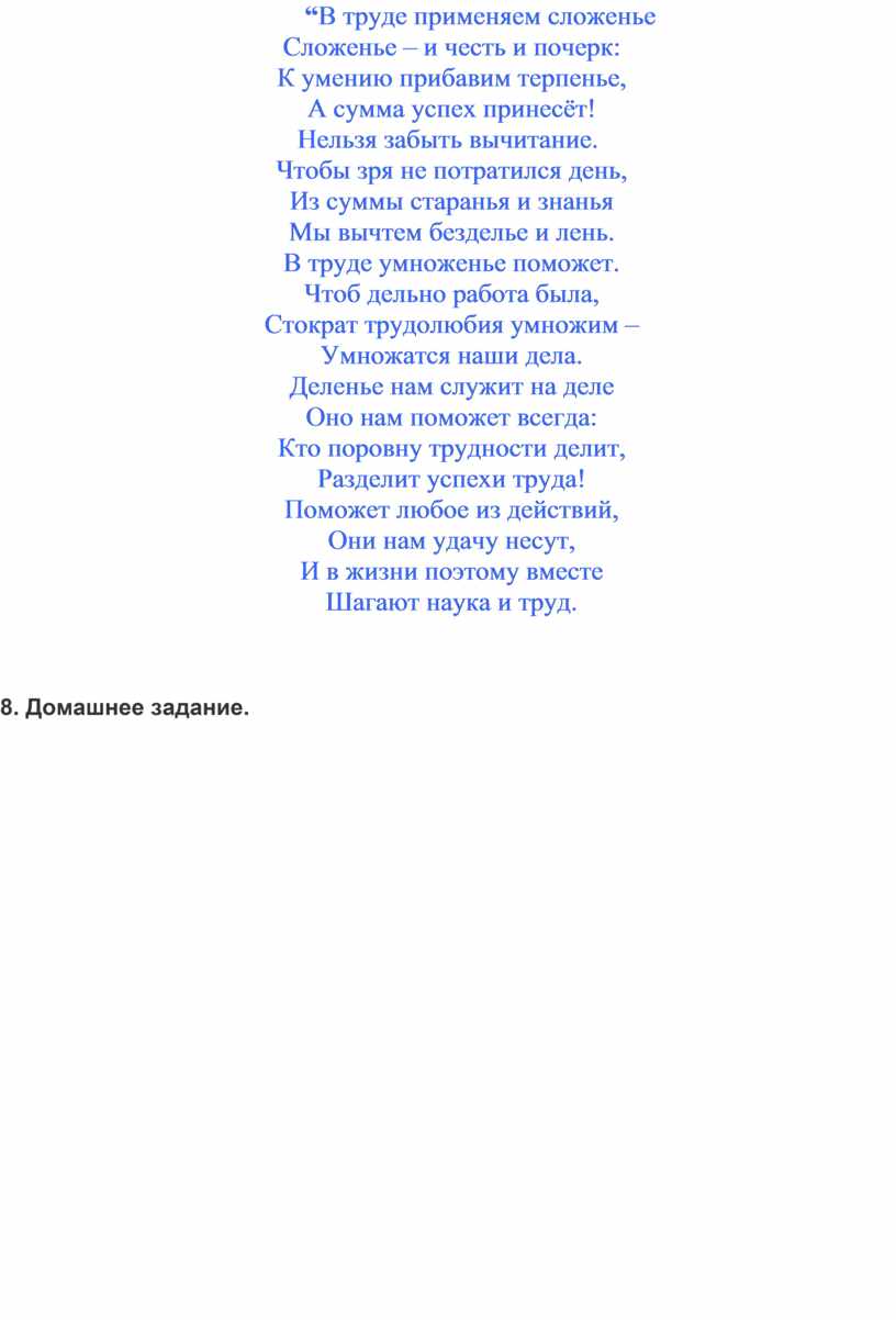 3. Воспитывающая цель: содействовать воспитанию интереса к математике, активности, дисциплинированности, честности, ответственности за свой труд и труд одноклассника, воспитание навыков самоконтроля и взаимоконтроля.