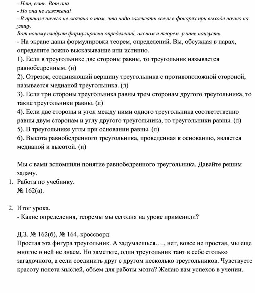 1). Если в треугольнике две стороны равны, то треугольник называется равнобедренным. (и)