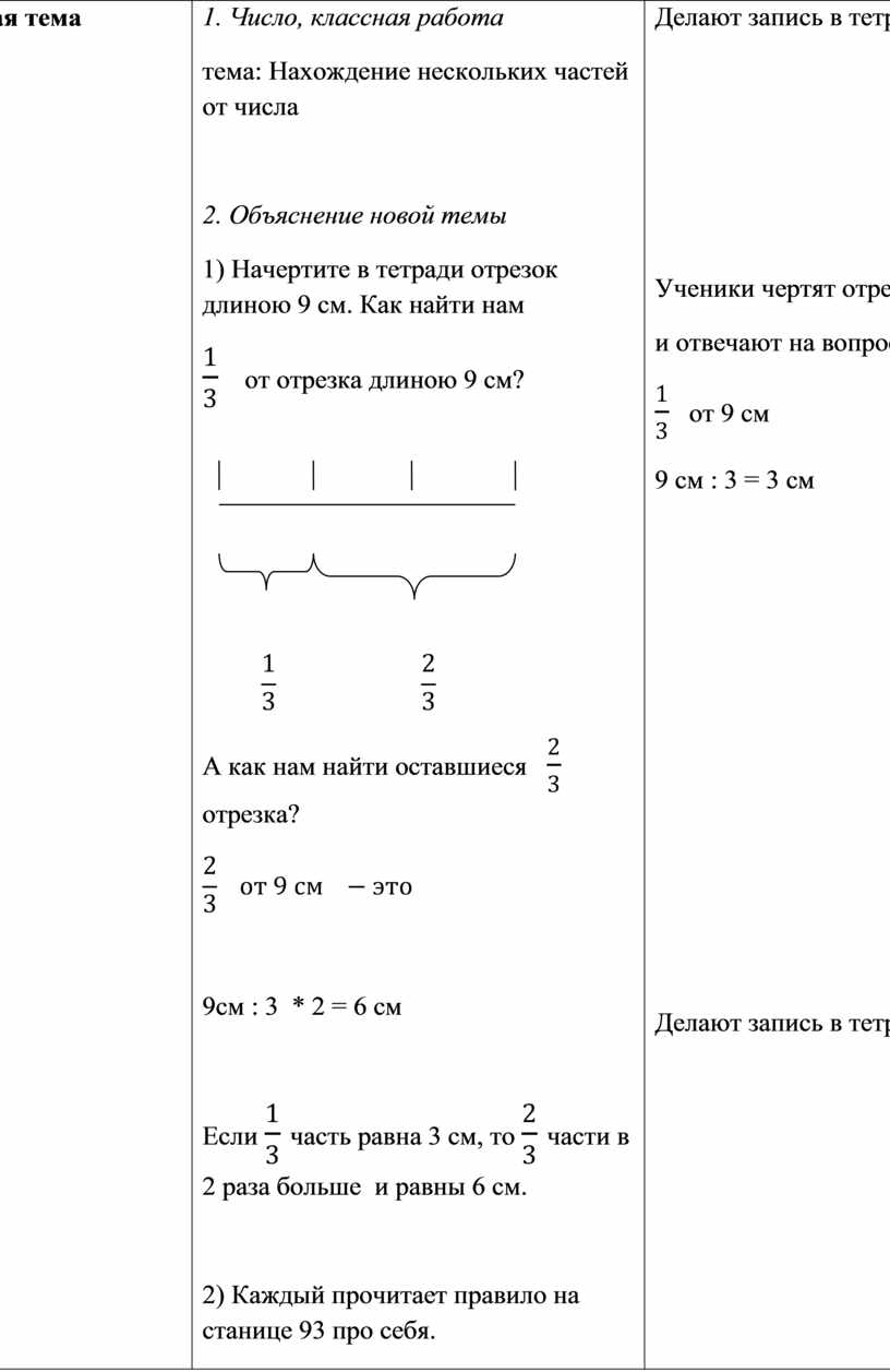 1. Число, классная работа тема: Нахождение нескольких частей от числа
