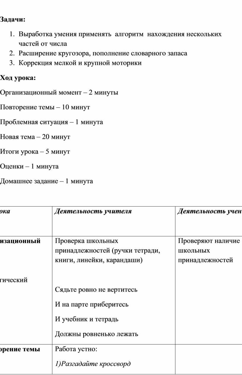 1. Выработка умения применять алгоритм нахождения нескольких частей от числа