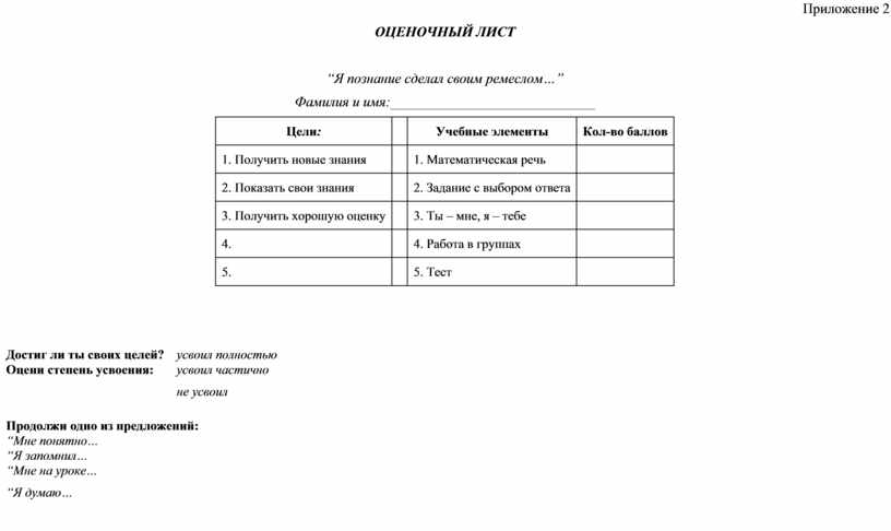 Достиг ли ты своих целей? Оцени степень усвоения: |