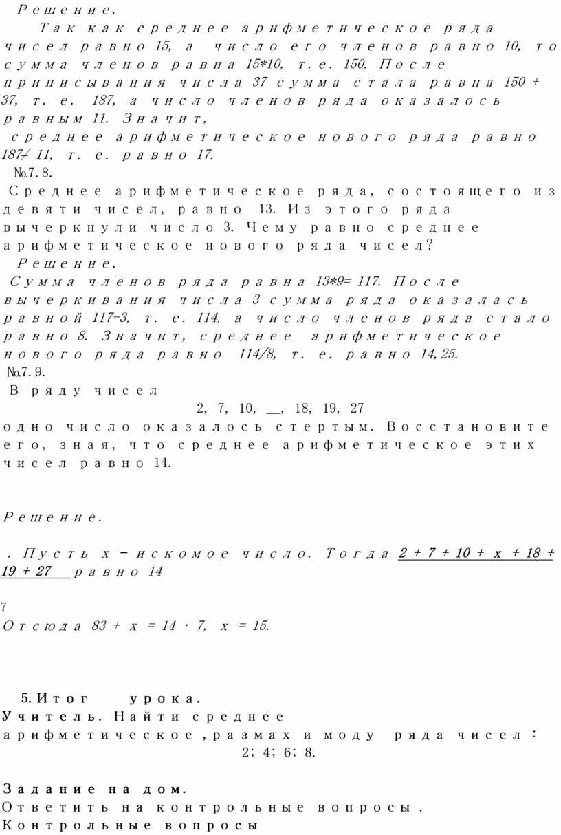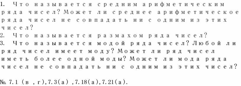 1. Что называется средним арифметическим ряда чисел? Может ли среднее арифметическое ряда чисел не совпадать ни с одним из этих чисел?