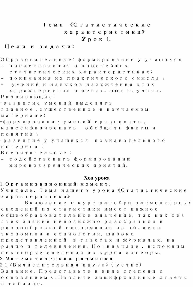 Включение в курс алгебры элементарных сведений из статистики имеет важное общеобразовательное значение, так как без этих знаний невозможно разобраться в разнообразной информации из области экономики и социологии, широко представленной в газетах и журналах, на радио и телевидении. Но ,вначале , вспомним некоторые сведения из курса алгебры.