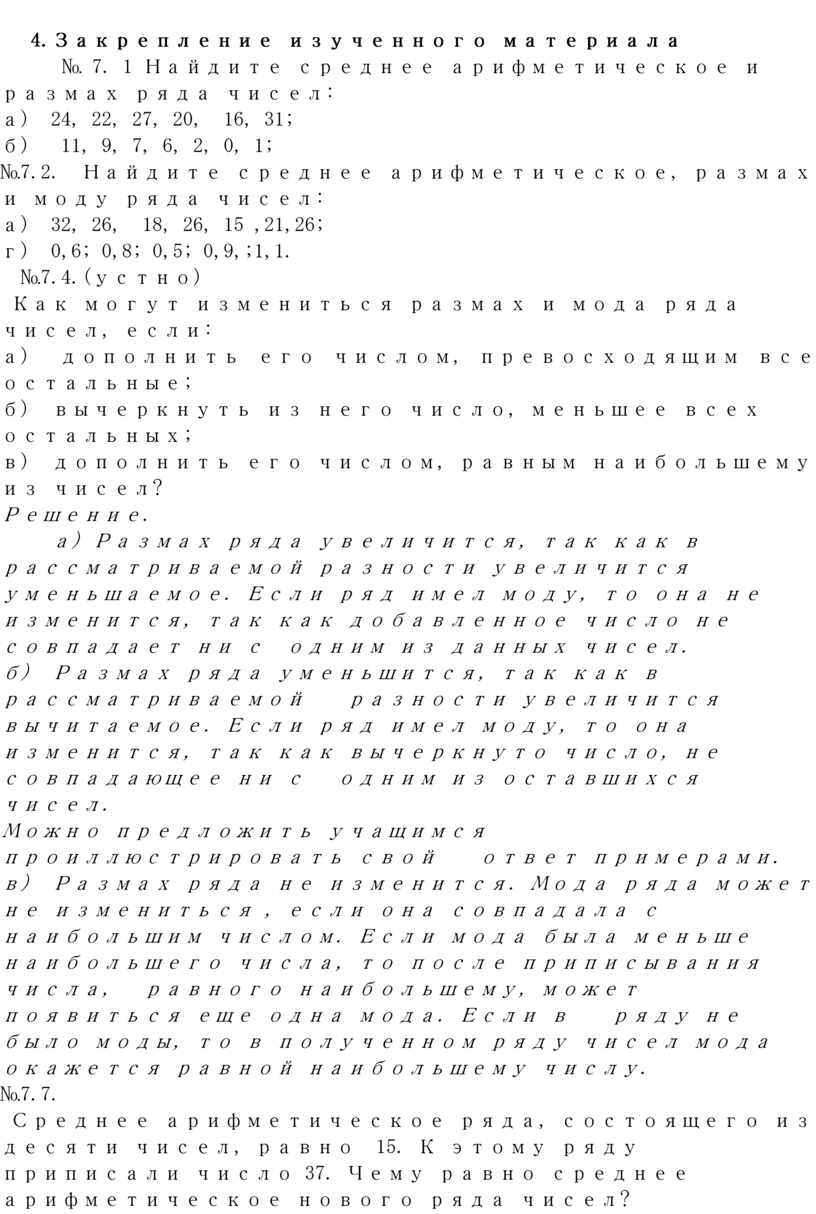 № 7. 1 Найдите среднее арифметическое и размах ряда чисел: