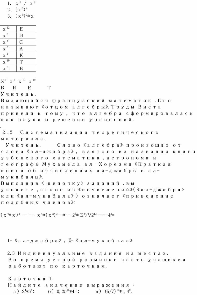 Выполнив « цепочку» заданий ,вы узнаете ,какое из «исчислений»( «ал-джабра» или «ал-мукабала» ) означает «приведение подобных членов»: