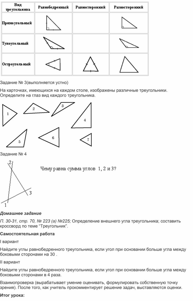 Урок геометрии в 7 классе по теме “Сумма углов треугольника”.