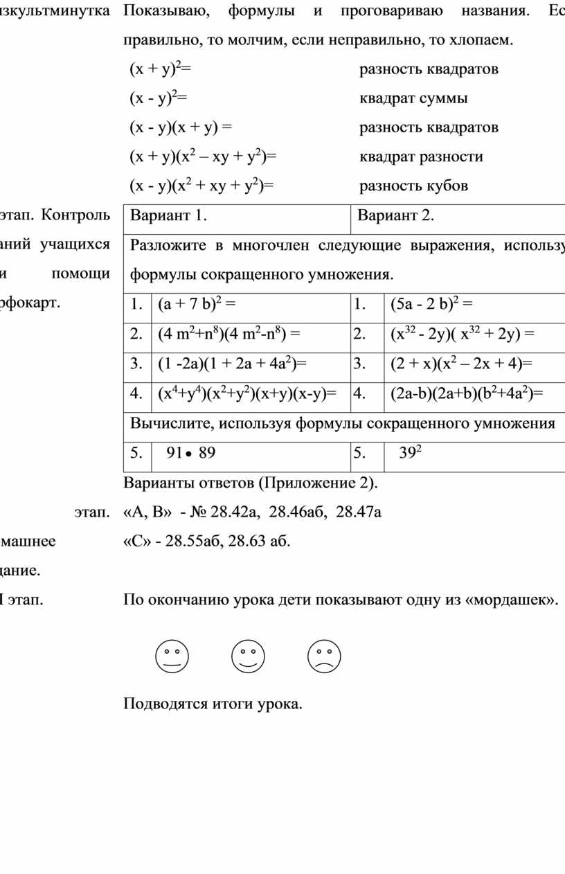 1. Формировать систему знаний у учащихся о формулах сокращенного умножения (разложение в многочлен).