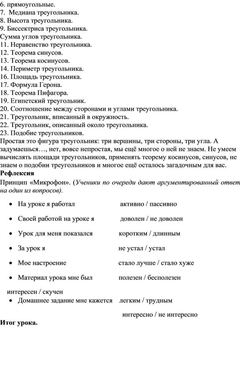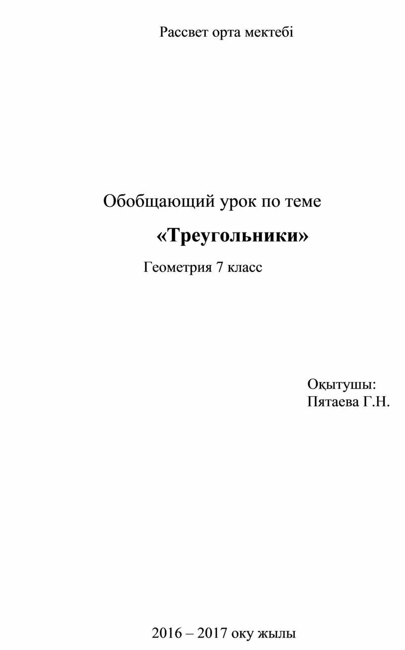 Тема урока: Обобщающий урок по теме «Треугольники».