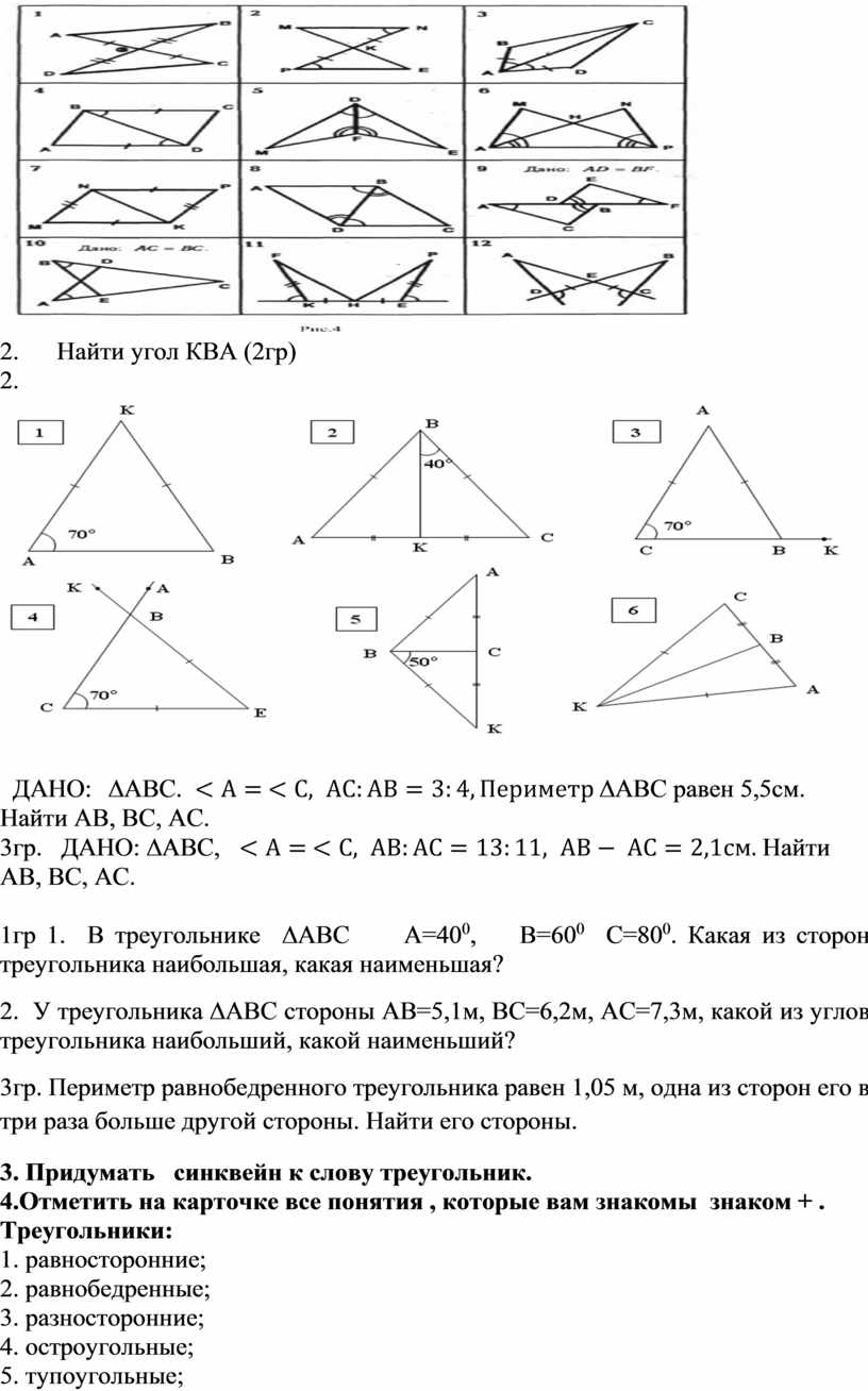 5. Виды треугольников по длине сторон? .(каз., анг яз)