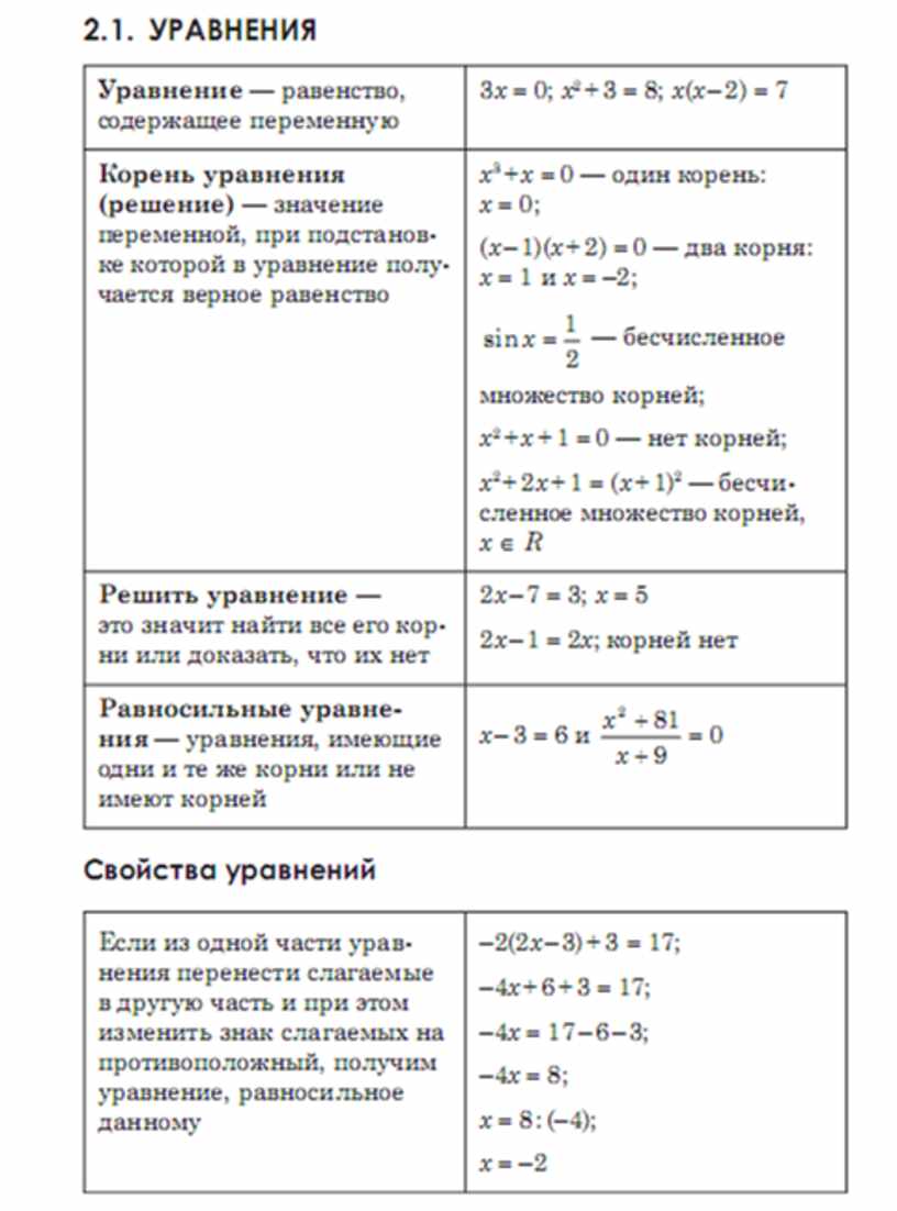 Алгебра в схемах таблицах