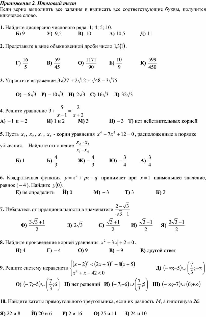 Если верно выполнить все задания и выписать все соответствующие буквы, получится ключевое слово.