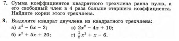 ü Верно выделяет квадрат двучлена из квадратного трехчлена.