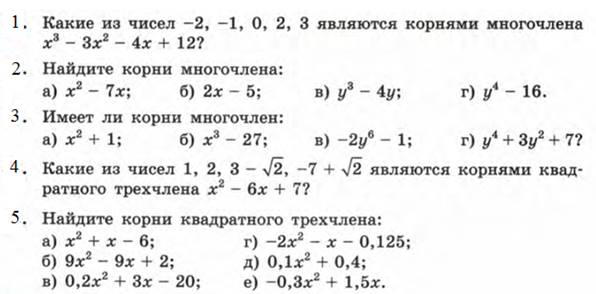 ü Верно определяет из указанных чисел корни заданного уравнения;