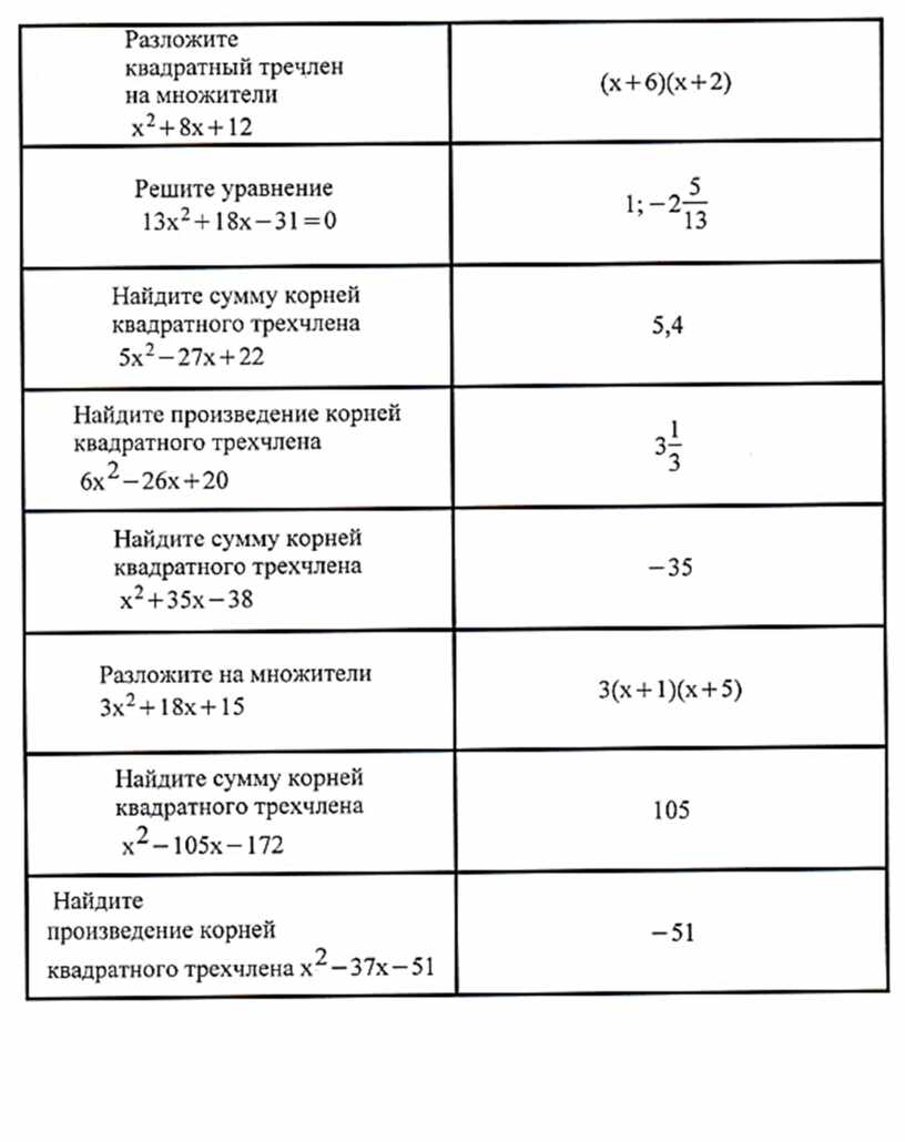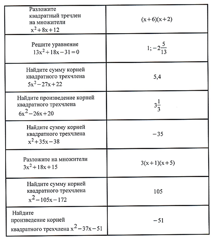 Алгебра_8класс_Квадратные уравнения_Квадратный трехчлен_Приложение 2 к уроку №4.docx
