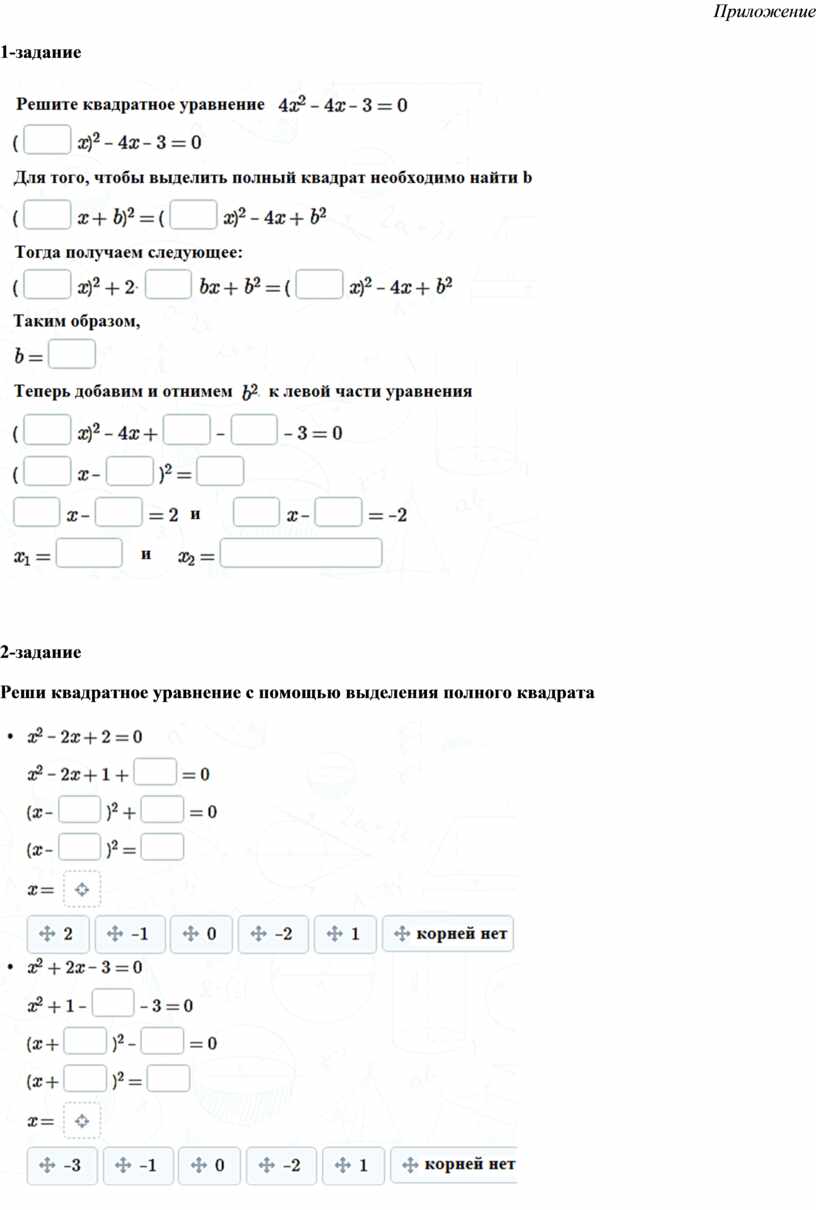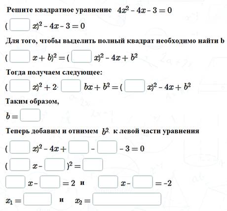 Реши квадратное уравнение с помощью выделения полного квадрата