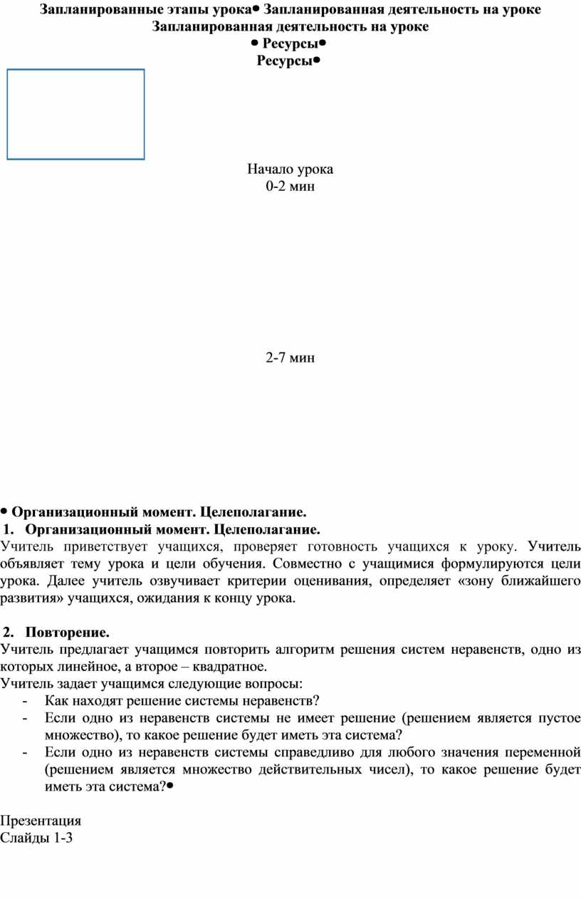 Начало урока 0-2 мин