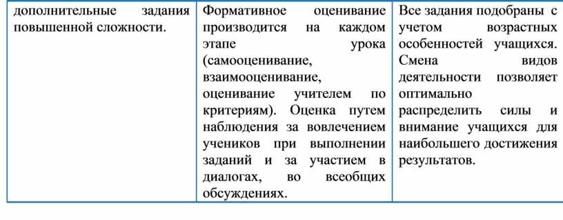 Все задания подобраны с учетом возрастных особенностей учащихся. Смена видов деятельности позволяет оптимально распределить силы и внимание учащихся для наибольшего достижения результатов. |