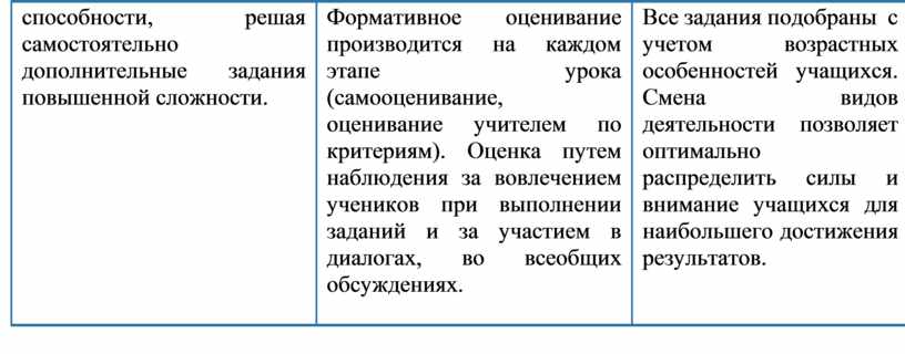 Все задания подобраны с учетом возрастных особенностей учащихся. Смена видов деятельности позволяет оптимально распределить силы и внимание учащихся для наибольшего достижения результатов. |