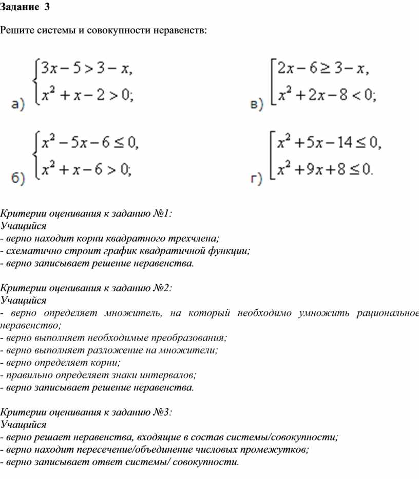 - верно решает неравенства, входящие в состав системы/совокупности;