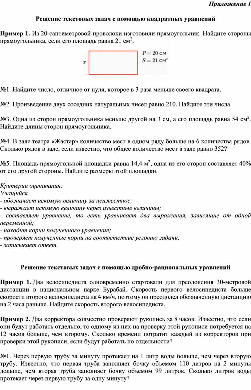 Пример 1. Два велосипедиста одновременно стартовали для преодоления 30-метровой дистанции в национальном парке Бурабай. Скорость первого велосипедиста больше скорости второго велосипедиста на 4 км/ч, поэтому он преодолел обозначенную дистанцию на 2 часа раньше. Найдите скорость второго велосипедиста.