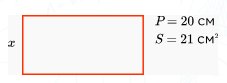 Решение. По условию задачи периметр прямоугольника равен 20 см, а площадь – 21 см2. Пусть одна из сторон прямоугольника будет равна x: