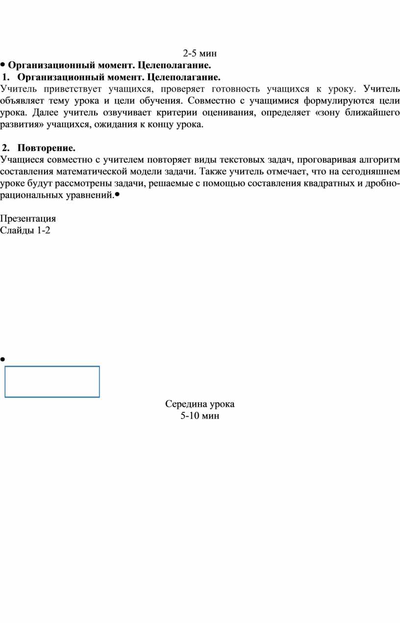 1. Организационный момент. Целеполагание. Учитель приветствует учащихся, проверяет готовность учащихся к уроку. Учитель объявляет тему урока и цели обучения. Совместно с учащимися формулируются цели урока. Далее учитель озвучивает критерии оценивания, определяет «зону ближайшего развития» учащихся, ожидания к концу урока.