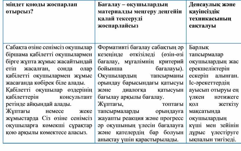 Бағалау – оқушылардың материалды меңгеру деңгейін қалай тексеруді жоспарлайсыз |