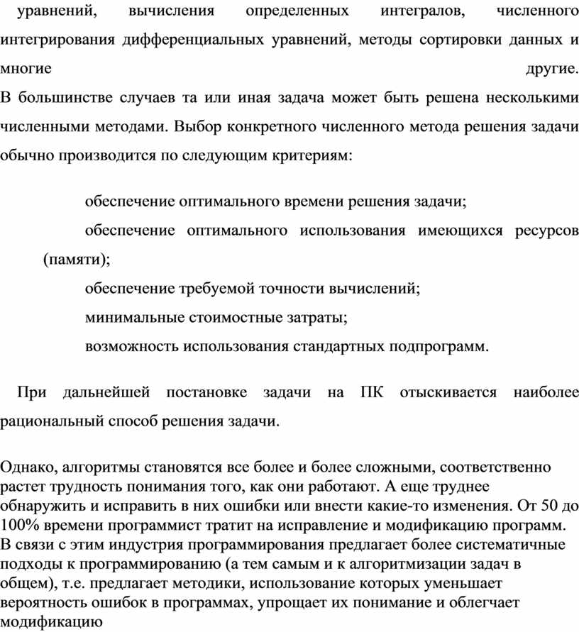 численными методами. Выбор конкретного численного метода решения задачи обычно