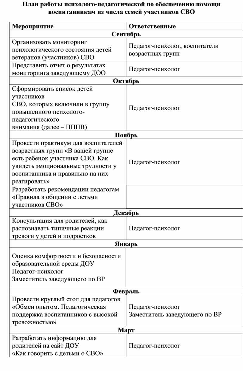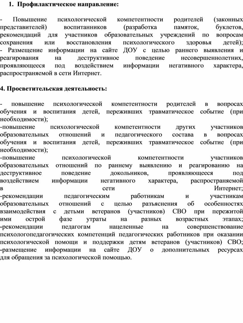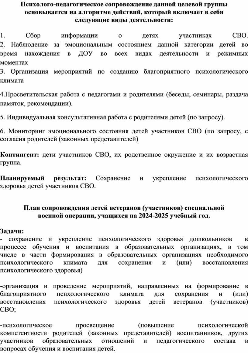 операции (в дальнейшем СВО) составлен план мероприятий, направленных на