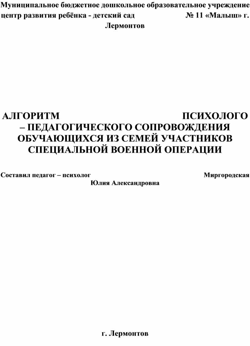 АЛГОРИТМ ПСИХОЛОГО – ПЕДАГОГИЧЕСКОГО СОПРОВОЖДЕНИЯ ОБУЧАЮЩИХСЯ ИЗ СЕМЕЙ УЧАСТНИКОВ СПЕЦИАЛЬНОЙ ВОЕННОЙ ОПЕРАЦИИ