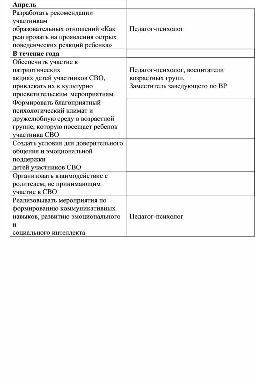 Формировать благоприятный психологический климат и дружелюбную среду в возрастной группе, которую посещает ребенок участника СВО |