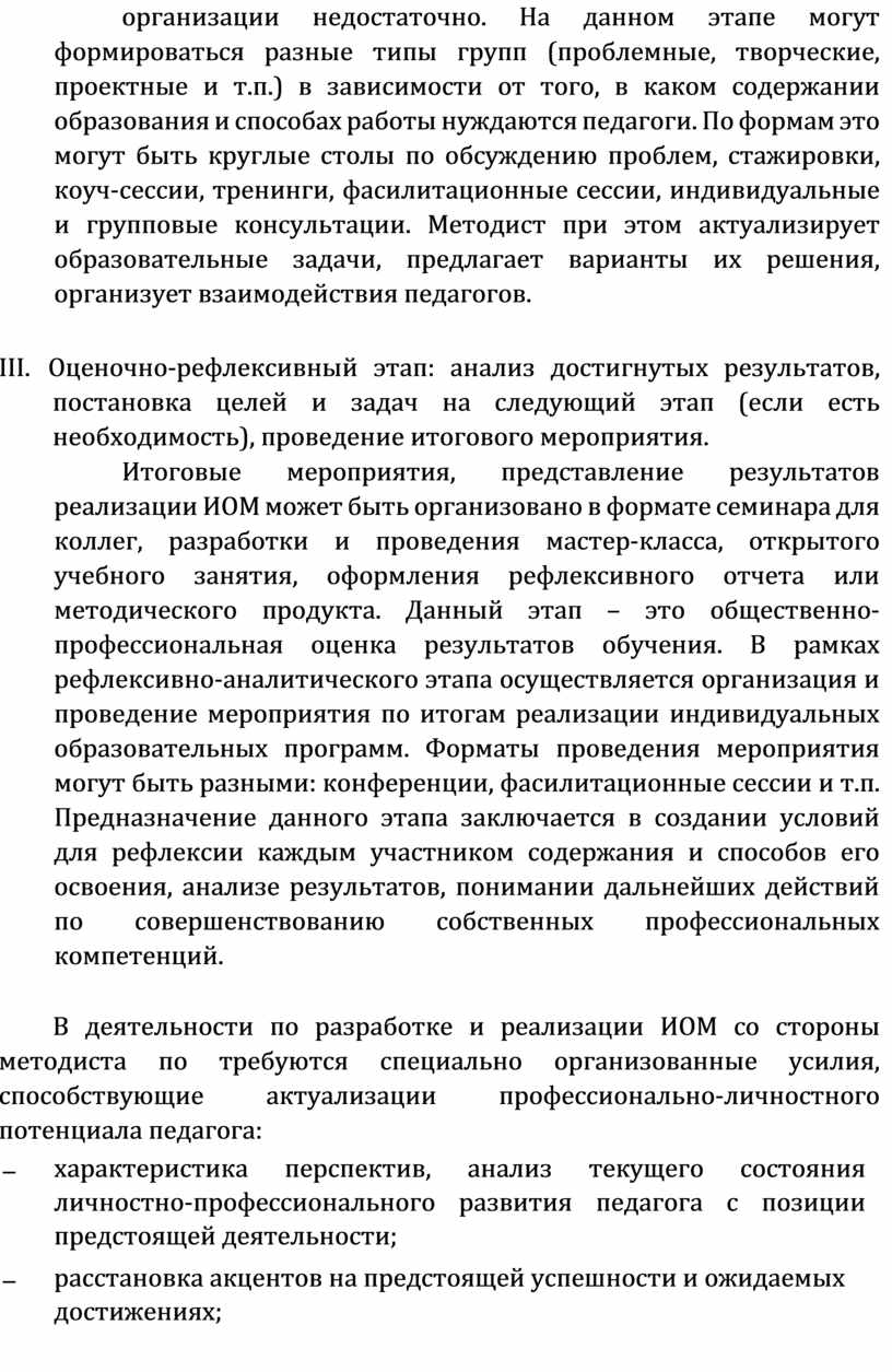 В деятельности по разработке и реализации ИОМ со стороны методиста по требуются специально организованные усилия, способствующие актуализации профессионально-личностного потенциала педагога: