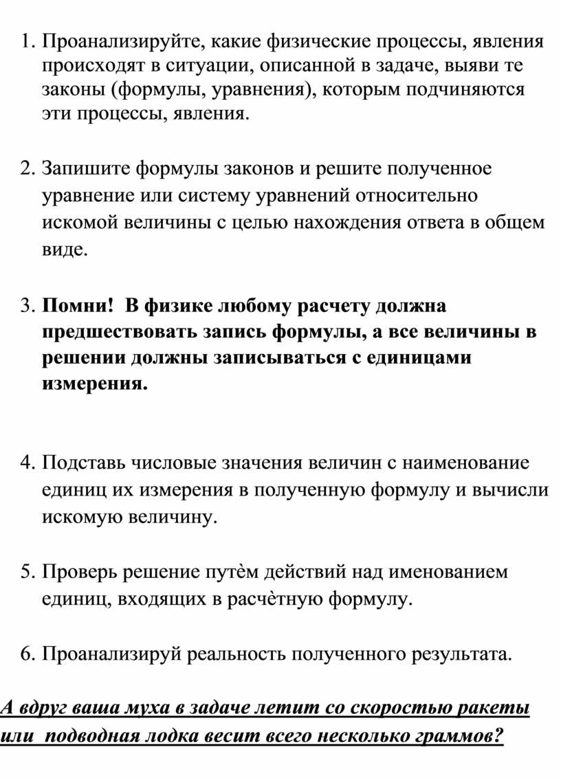 9. Проанализируйте, какие физические процессы, явления происходят в ситуации, описанной в задаче, выяви те законы (формулы, уравнения), которым подчиняются