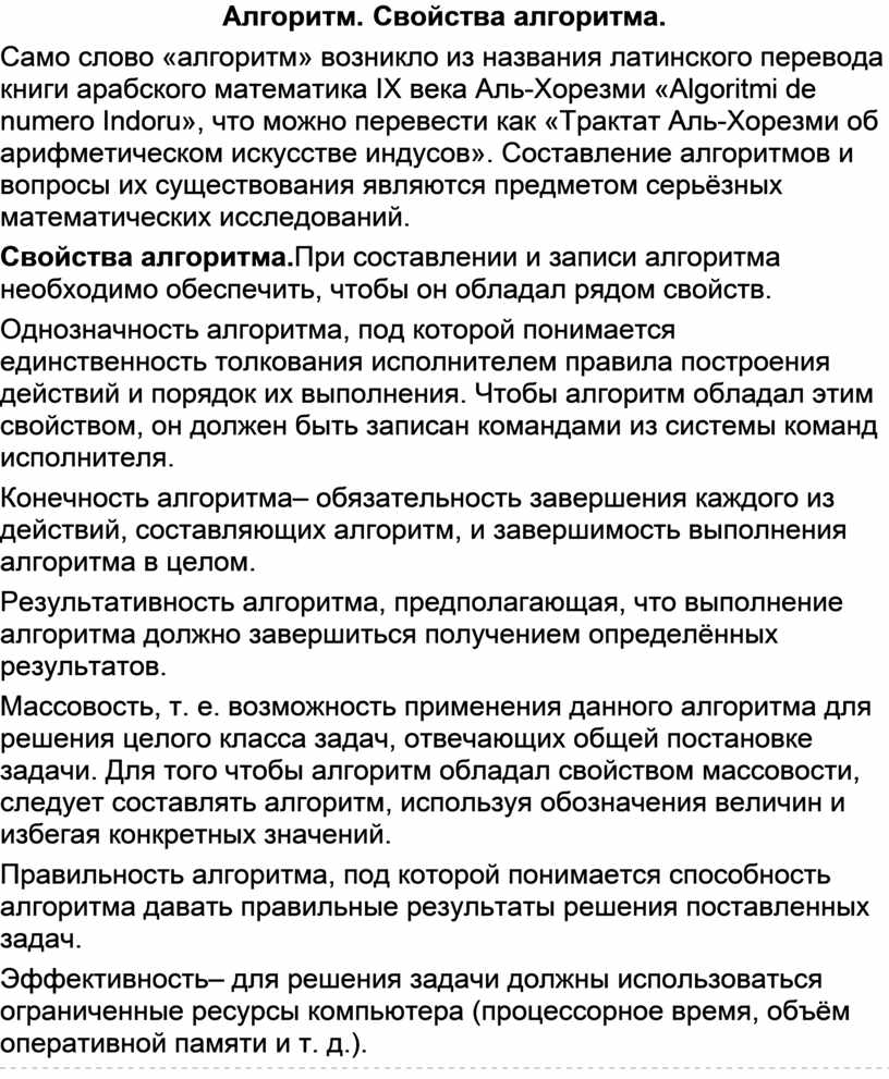 Свойства алгоритма.При составлении и записи алгоритма необходимо обеспечить, чтобы он обладал рядом свойств.