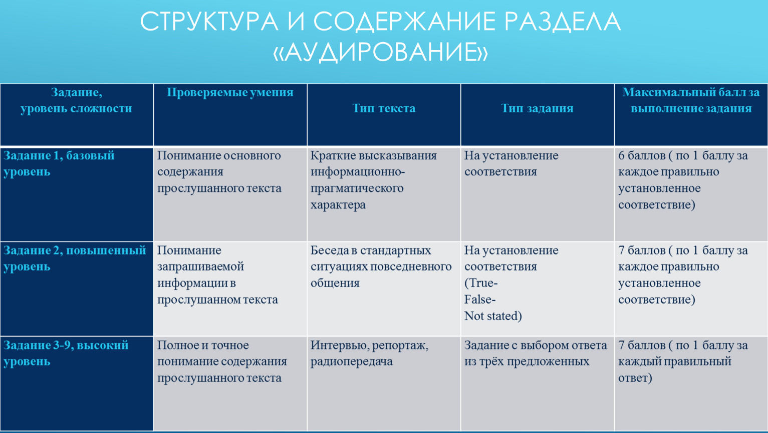 Структура и содержание раздела «Аудирование»