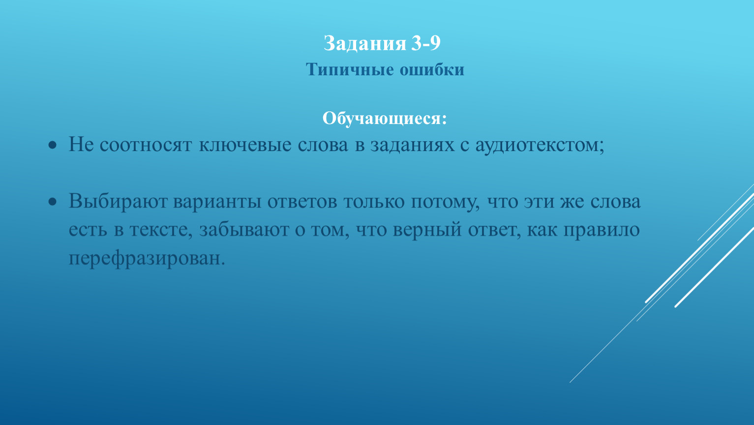 Не соотносят ключевые слова в заданиях с аудиотекстом;
