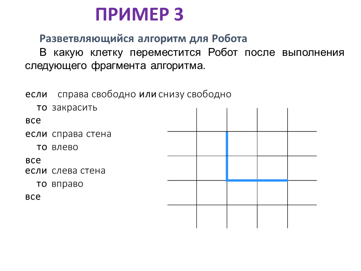 Для того чтобы закрасить клетку слева от себя, Робот должен переместиться влево, а затем закрасить клетку. Однако сделать это Робот сможет только тогда, когда не находится в клетках, являющихся левой границей поля. Поэтому, прежде чем сдвинуться влево, Робот должен проверить, свободно ли слева.