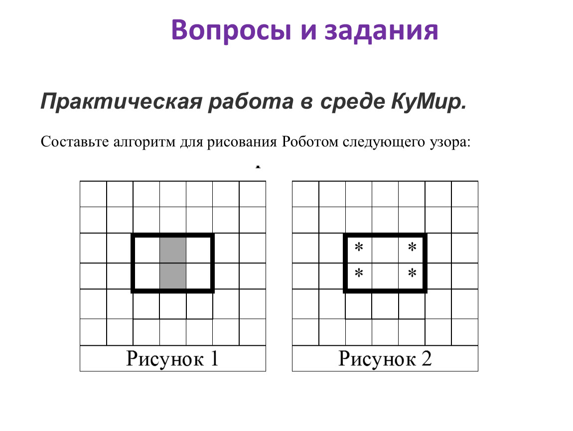 Результат работы данной программы зависит от начального положения Робота. Поэтому для проверки правильности работы программы необходимо подготовить начальные обстановки, которые дают разные ответы на вопрос: слева пусто?