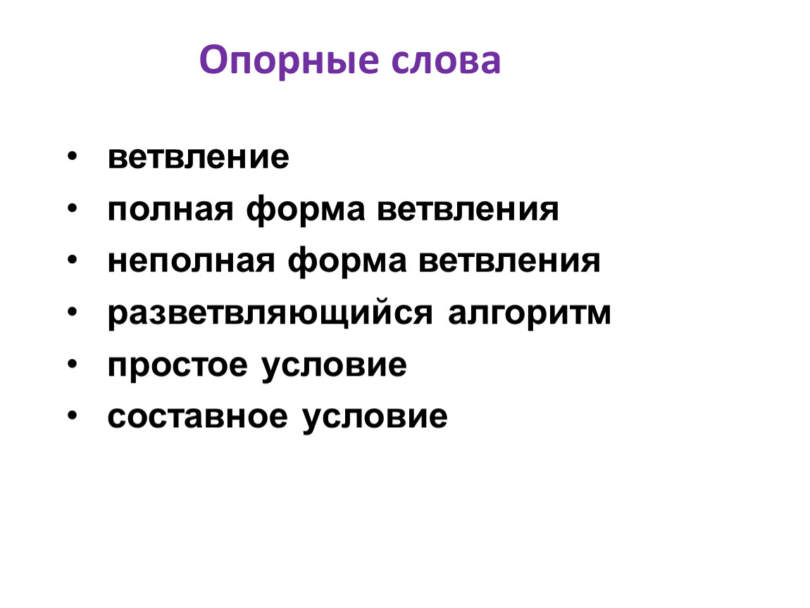 Простые условия содержат одно логическое выражение, то есть такое утверждение, которое является либо истинным, либо ложным.