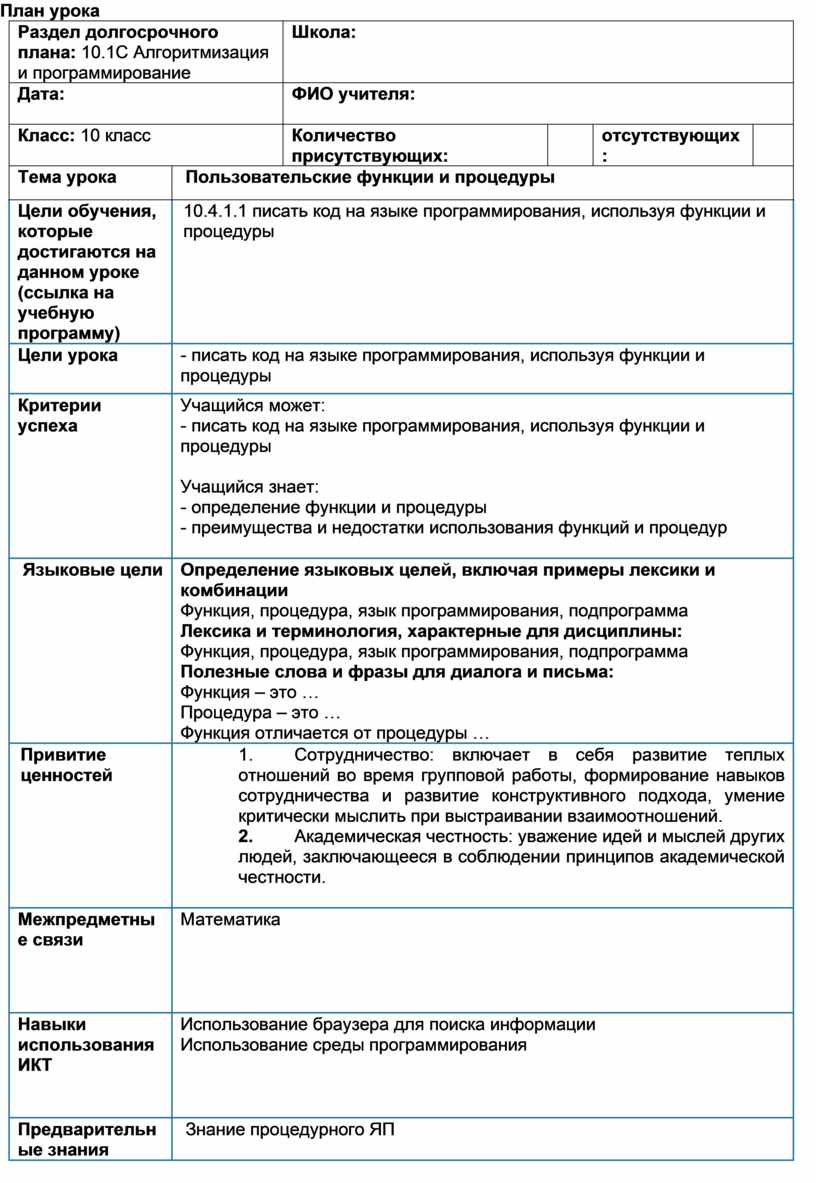 10.4.1.1 писать код на языке программирования, используя функции и процедуры