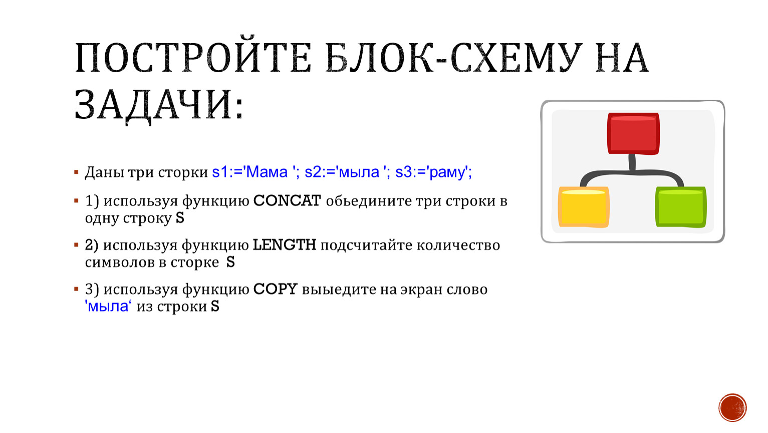 Даны три сторки s1:='Мама '; s2:='мыла '; s3:='раму';