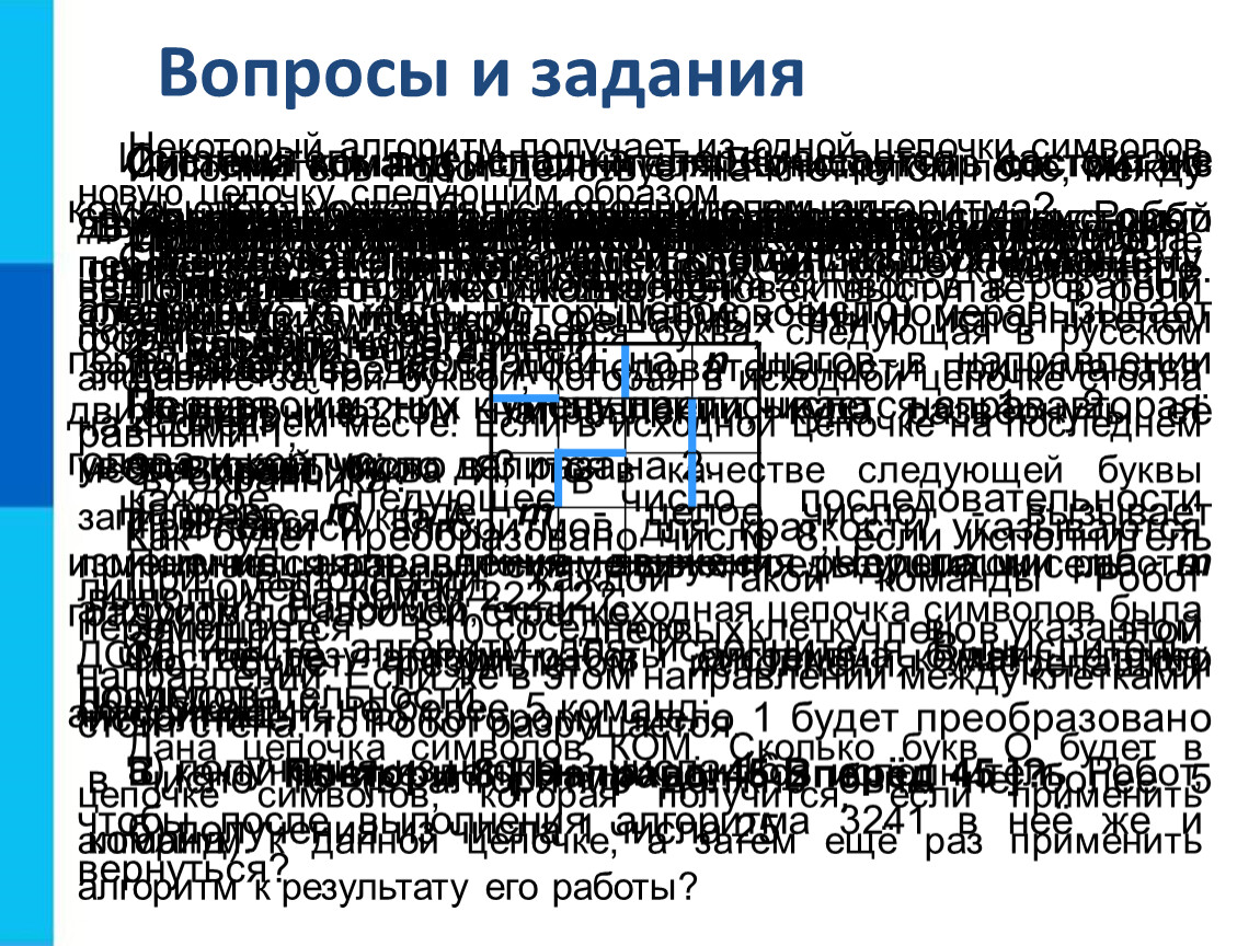 Получившаяся цепочка является результатом работы алгоритма. Например, если исходная цепочка символов была ДОМ, то результатом работы алгоритма будет цепочка ДОММОДН.